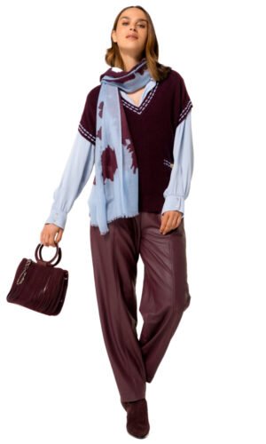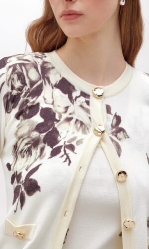 Ontdek de elegante veelzijdigheid van deze tweedelige set van Blu Girl, bestaande uit een cardigan en een mouwloze top. Gemaakt van zachte stretch viscose met een verfijnde rozenprint, perfect om je look een vrouwelijke en luxueuze touch te geven.