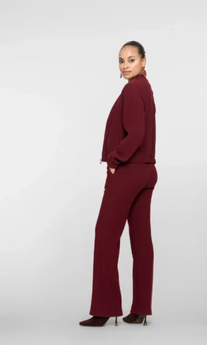 Deze Geisha broek in de kleur Port (bordeaux) combineert stijl en comfort in ƩƩn verfijnd ontwerp. Het high waist model met flared pijpen creƫert een vrouwelijk en elegant silhouet, terwijl de subtiele honeycomb structuur zorgt voor een luxe en moderne uitstraling.