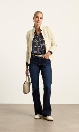 Caroline Biss Rechtvallende Blouse Hond Broderie ā Multi Color (4632) Deze rechtvallende blouse van Caroline Biss is een elegante toevoeging aan je garderobe, verrijkt met een speels en verfijnd hond broderie detail. De blouse heeft een vrouwelijke V-hals met een vaste strik, die zorgt voor een stijlvolle en tijdloze uitstraling. De lange mouwen met manchetten,…