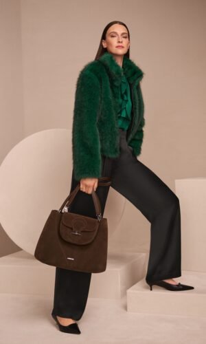 MarcCain Knusse jas van fake fur ā Model ZC1207W64 in Dark Jade Green Deze MarcCain jas in de kleur Dark Jade Green is een echte blikvanger voor de winter. Gemaakt van superzacht imitatiebont met lange pool, biedt deze jas niet alleen warmte maar ook een ultieme knuffelfactor. De tweewegritssluiting met stijlvol staafvormig hangertje en de…