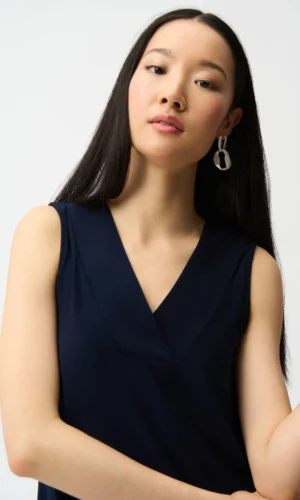 Deze elegante mouwloze top van Joseph Ribkoff is een verfijnde basic die moeiteloos stijl en comfort combineert. De top is vervaardigd uit een luxueuze silky knit-stof met een subtiele glans, die zacht aanvoelt op de huid en prachtig soepel valt.