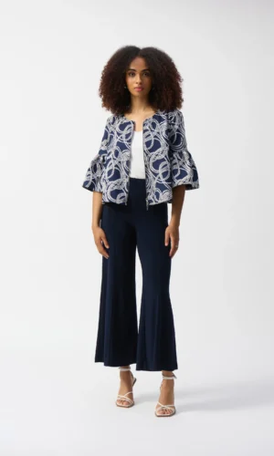 Deze Joseph Ribkoff culottebroek, gemaakt van een zachte brushed viscosemix, combineert comfort met eigentijdse stijl. Het jacquard-patroon met vierkante steken geeft de broek een subtiele textuur, terwijl de ontspannen pasvorm zorgt voor moeiteloos draagcomfort.
