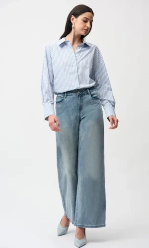 GeĆÆnspireerd op de glamour van de jaren ā70 straalt de Joseph Ribkoff Goldie Wide-Leg Jeans moeiteloze zelfverzekerdheid uit. Een beetje gedurfd, een beetje zorgeloos ā deze denim is ontworpen met een wijd vallend silhouet dat een vleugje drama toevoegt aan elke look.