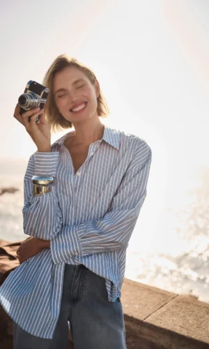 De Tencel Stripe Print Boxy Blouse van Joseph Ribkoff is een stijlvolle en eigentijdse blouse met een luchtige, boxy pasvorm. Gemaakt van een soepele Tencel-mix, voelt deze blouse heerlijk zacht aan en biedt ze optimaal draagcomfort.
