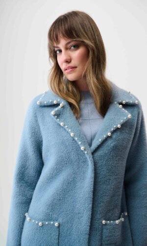 Deze Feather Yarn Sweater Coat van Joseph Ribkoff combineert comfort met verfijnde elegantie. Het ontwerp heeft een losvallende pasvorm en is vervaardigd uit heerlijk zacht feather yarn-materiaal, wat zorgt voor een luxueus en behaaglijk gevoel.