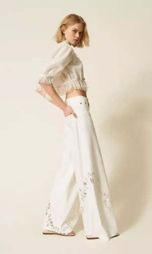 Deze stijlvolle denim broek van Twinset combineert een stoere uitstraling met verfijnde details. Gemaakt van stevig katoenen bull denim, biedt deze broek een comfortabele en duurzame kwaliteit.
