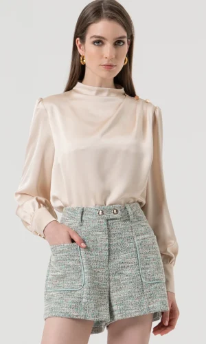 Voeg een vleugje luxe toe aan je garderobe met deze satijnen blouse van Fracomina in de zachte kleur Vanilla. De blouse heeft een regular fit en valt soepel langs het lichaam.