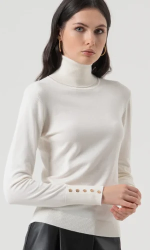Deze klassieke coltrui van Fracomina in de kleur Cream is een tijdloze basic die niet mag ontbreken in je garderobe. De trui heeft een regular fit, een hoge col en lange mouwen die zijn afgewerkt met subtiele knopen bij de manchetten voor een verfijnde touch.