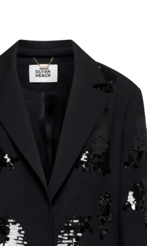 De Silvian Heach Blazer Vetam is een echte eyecatcher dankzij de contrasterende appliquƩs die een onregelmatig patroon vormen. Deze unieke textuur geeft de blazer een luxe uitstraling en maakt hem tegelijk gedurfd en verfijnd.