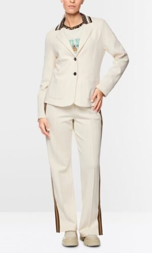 Deze eenrijige blazer van MarcCain is vervaardigd uit zachte beverstof en combineert een klassieke snit met moderne details. De blazer sluit met twee knopen en is voorzien van opgestikte zakken, wat een stijlvolle en toch casual uitstraling geeft.
