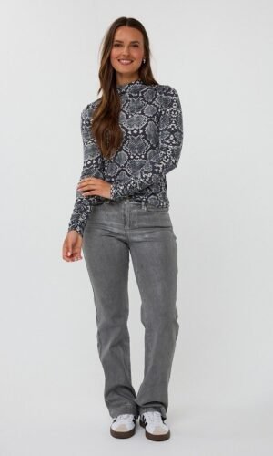 Deze Esqualo top in een stoere slangenprint geeft je look direct een opvallend en eigentijds karakter. Het nauwsluitende model met korte col accentueert het silhouet, terwijl de plooien aan het einde van de mouwen op elastiek zorgen voor een speels en stijlvol detail.