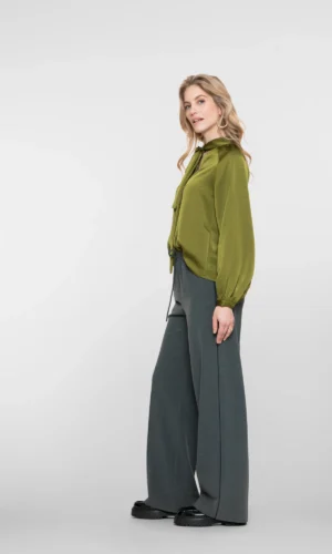 Deze Geisha broek combineert stijl en comfort in een elegant ontwerp. Met zijn hoge taille en uitlopende broekspijpen creƫert dit model een flatterend en modern silhouet dat perfect past bij zowel zakelijke als casual looks.