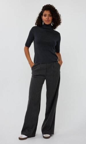 Geef je outfit een stijlvolle en moderne touch met deze Esqualo high waist broek in donkergrijs. Het model heeft wijdvallende broekspijpen en is voorzien van subtiele krijtstrepen en glinsterende strass steentjes, wat zorgt voor een elegante en feestelijke uitstraling.