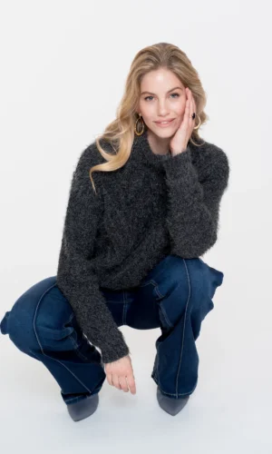 Deze Geisha kabeltrui in donkergrijs is een tijdloze klassieker die warmte en stijl moeiteloos combineert. De rechtvallende pasvorm en de opstaande turtleneck zorgen voor een moderne en comfortabele look, ideaal voor koude dagen.