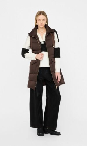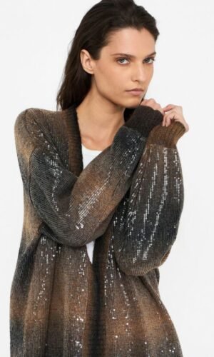 Dit Liu Jo vest in de kleur Bruin Shaded is een echte eyecatcher dankzij de combinatie van warme wolmix en subtiele sprankeling. Het lange, gebreide ontwerp is verrijkt met een all-over sequin afwerking, waardoor dit vest een luxueuze en feestelijke uitstraling krijgt.