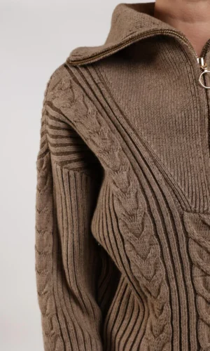 De Nukus Clair trui in de kleur Fango combineert comfort met een sportieve uitstraling. De losse pasvorm en de rits in de hals geven deze pullover een moderne en casual look. Perfect te dragen in je vrije tijd of te combineren met een stoere broek voor een eigentijdse outfit.