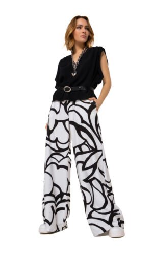 Deze elegante boxy top van Joseph Ribkoff combineert strakke lijnen met een zachte, comfortabele structuur. De blouse is uitgevoerd in een hoogwaardige geweven twillstof en heeft een moderne mandarin kraag met een verfijnde V-hals.
