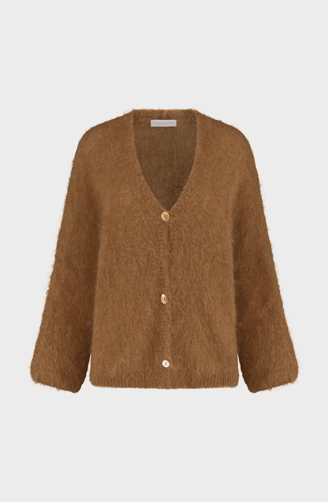 De V-hals en klassieke knoopsluiting aan de voorkant zorgen voor een tijdloos silhouet, terwijl de hoogwaardige mohair wolmix (80% Mohair, 18% Polyamide, 2% Elastaan) heerlijk zacht en warm aanvoelt. Ideaal om over een blouse, jurk of T-shirt te dragen tijdens frisse dagen.