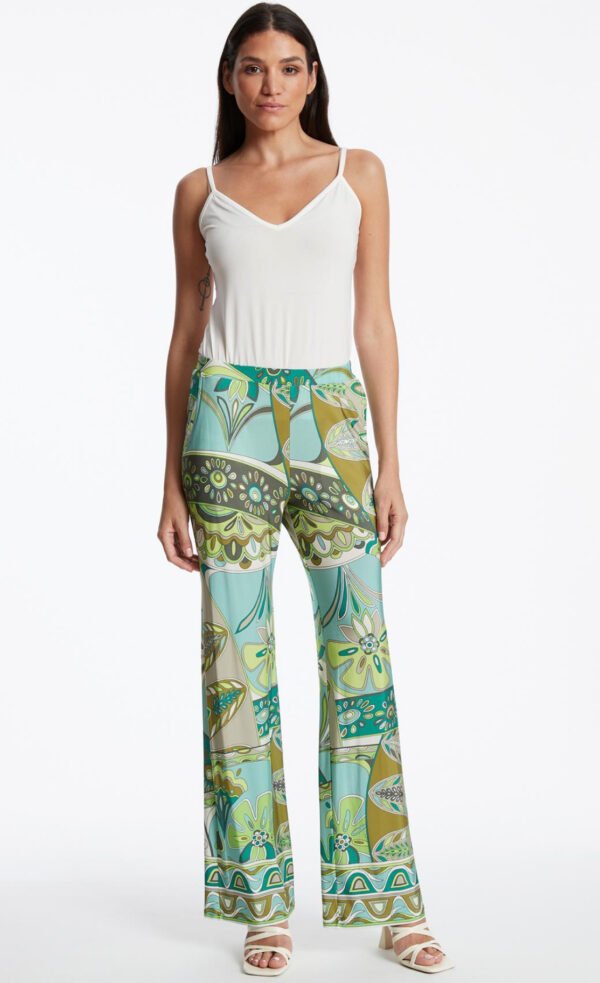 De Ana Alcazar Zimala broek is een stijlvolle en comfortabele keuze voor elke modebewuste vrouw. Met een wijd vallend silhouet en een kleurrijke bloemenprint, straalt deze broek elegantie en speelsheid uit. De jersey stof met stretch zorgt voor een perfecte pasvorm en optimaal draagcomfort.