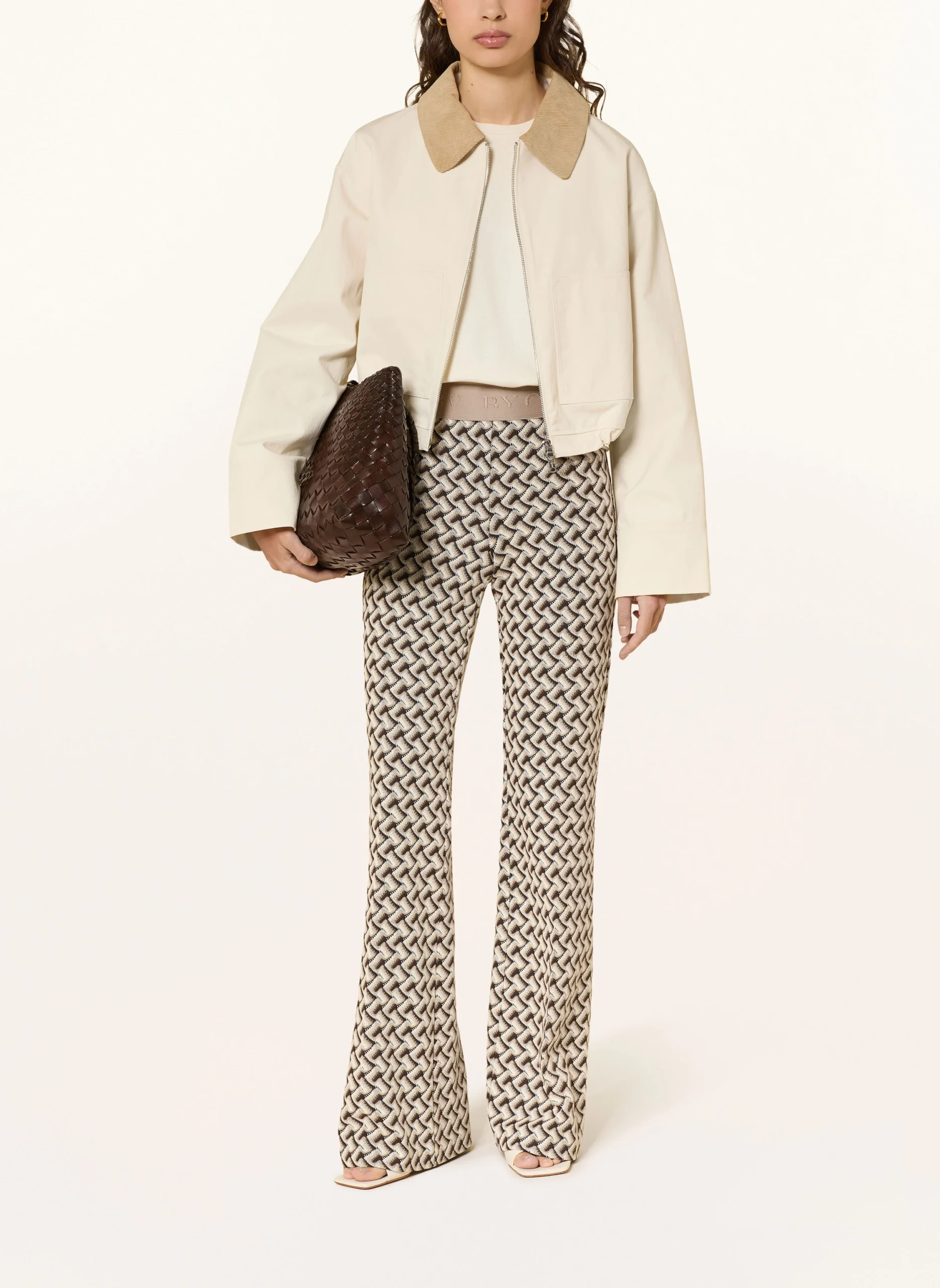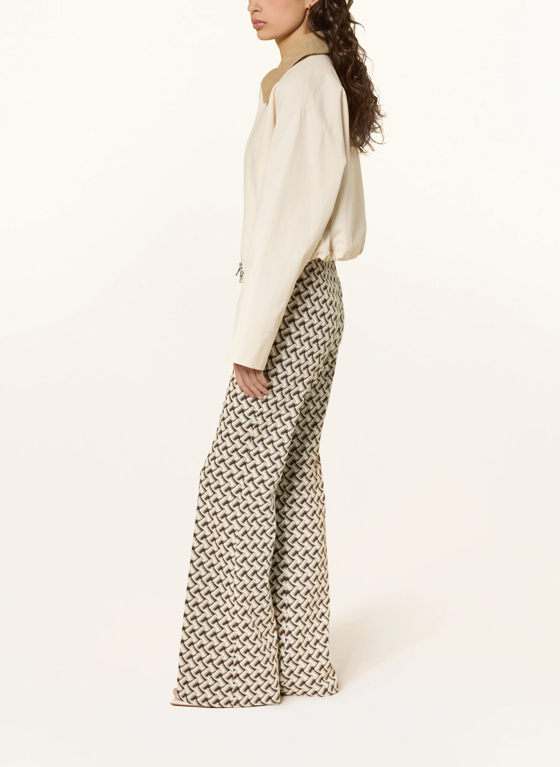 De Cambio Broek Francis is een stijlvolle en comfortabele broek met een moderne, verfijnde uitstraling. De broek heeft een hoge taille en een elastische tailleband, wat zorgt voor een prettige pasvorm en optimaal draagcomfort. De wijde pijpen en het all-over patroon geven de broek een eigentijdse look, terwijl de fijngebreide stof met lichte textuur zorgt voor een luxe uitstraling. Dankzij het sluitingsloze ontwerp is de broek makkelijk aan en uit te trekken en perfect voor zowel casual als geklede outfits.