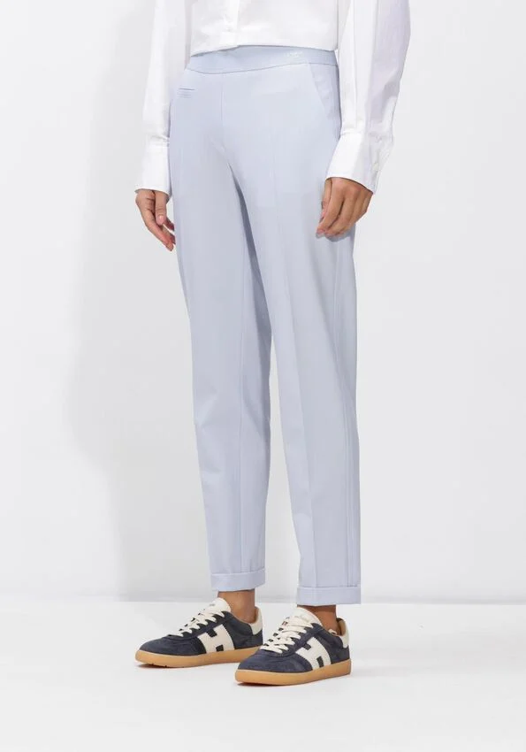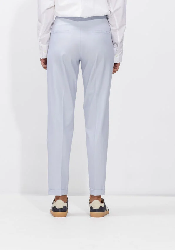 De KIM pantalon van Cambio is ontworpen voor dames die stijl en comfort willen combineren. Uitgevoerd in een zachte lichtblauwe tint is deze broek perfect voor de lente en zomer, en brengt hij een frisse, eigentijdse uitstraling aan je garderobe.