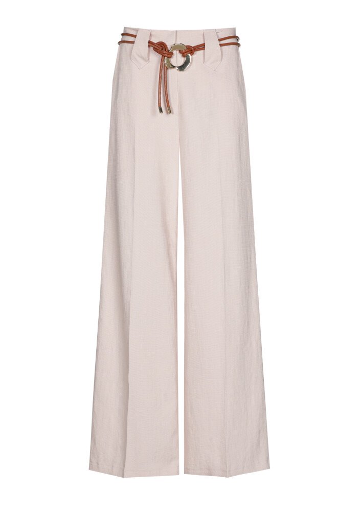 De broek is verfijnd afgewerkt met een blinde ritssluiting aan de voorzijde, waardoor de look strak en minimalistisch blijft. De steekzakken in de zijnaad zorgen voor functionaliteit zonder afbreuk te doen aan het elegante ontwerp. De ingestreken plooien langs de benen geven de broek een klassieke en verzorgde uitstraling. De bijgeleverde riem maakt de look compleet en zorgt voor extra stylingmogelijkheden. De zachte Nude kleur (74) is tijdloos en gemakkelijk te combineren.