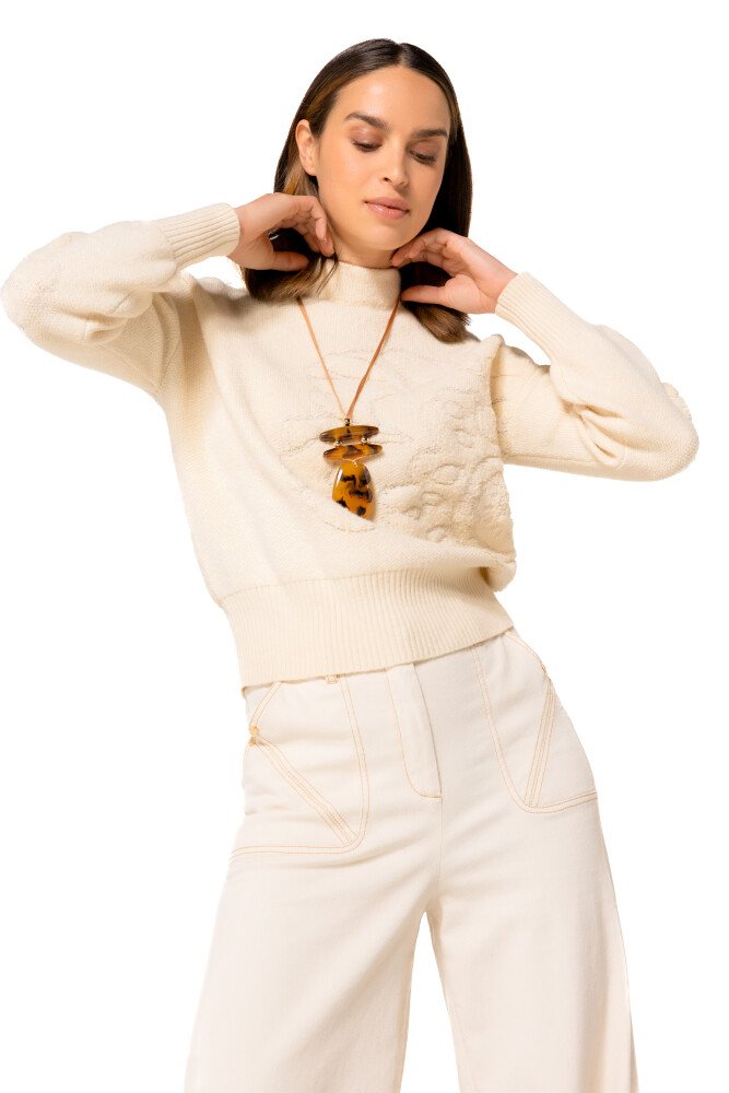 Caroline Biss Cozy Trui Bloemreliëf 4215 Cream