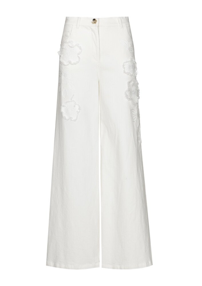 Caroline Biss Jeans Gerafeld Bloemdetail Mid Waist 1575 Natural