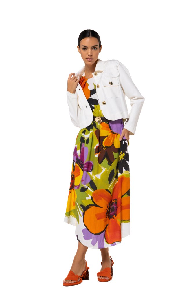 Geef je outfit een modieuze en speelse touch met dit korte jeansjack van Caroline Biss, model 1888. Het jack onderscheidt zich door het unieke uitgerafelde bloemdetail, wat zorgt voor een eigentijdse en vrouwelijke uitstraling. De natuurlijke kleur maakt het jasje veelzijdig en makkelijk te combineren.