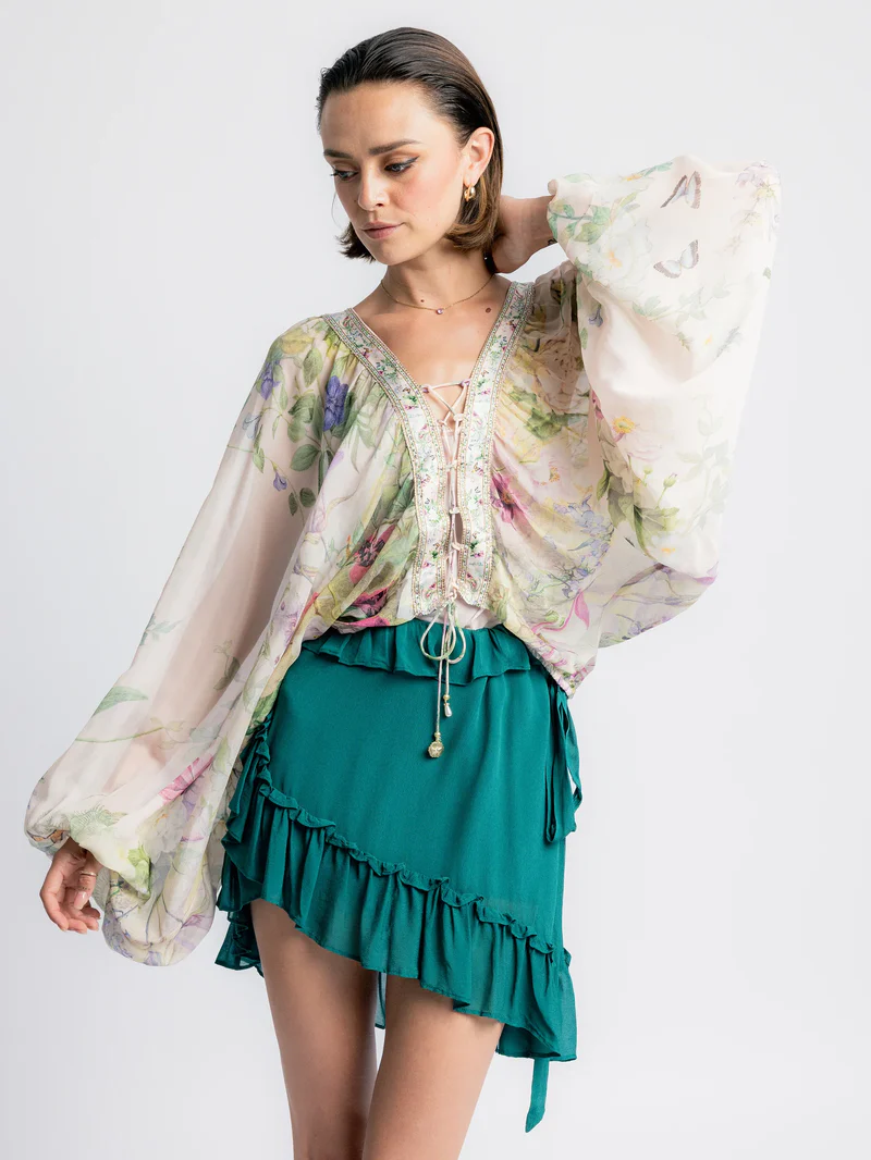 Dream Catcher Edith Blouse D6137XW173 Green Pink Garden