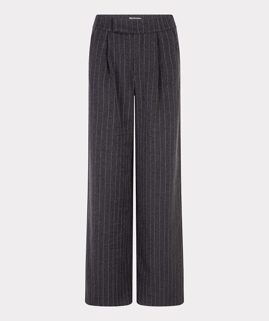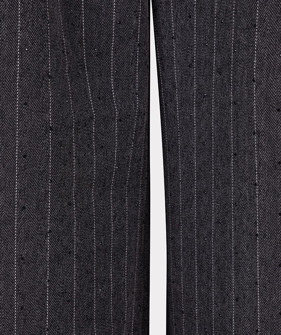Geef je outfit een stijlvolle en moderne touch met deze Esqualo high waist broek in donkergrijs. Het model heeft wijdvallende broekspijpen en is voorzien van subtiele krijtstrepen en glinsterende strass steentjes, wat zorgt voor een elegante en feestelijke uitstraling.