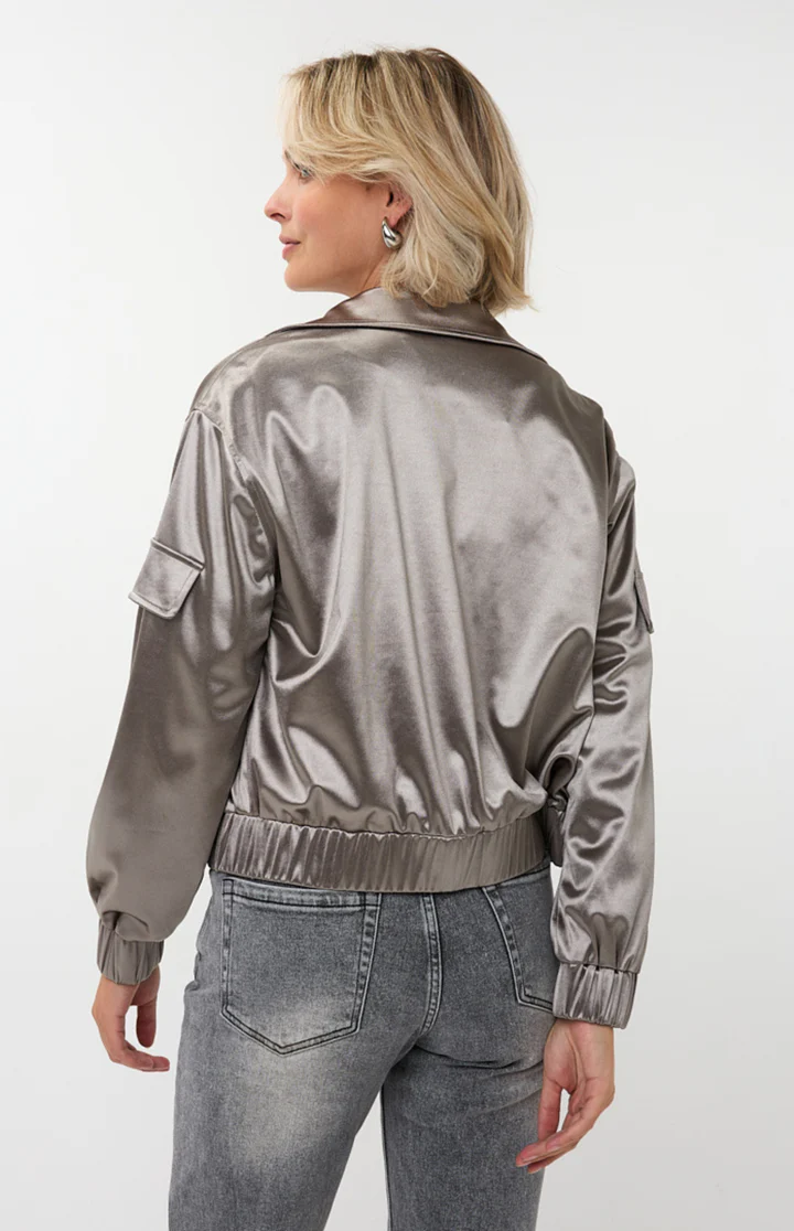 Maak een fashionable statement met het Esqualo Metallic Silver Jack. Dit trendy jasje heeft een glanzende metallic finish en combineert een sportieve bomberstijl met een luxe uitstraling. Perfect om je casual look te upgraden of te dragen bij feestelijke gelegenheden.