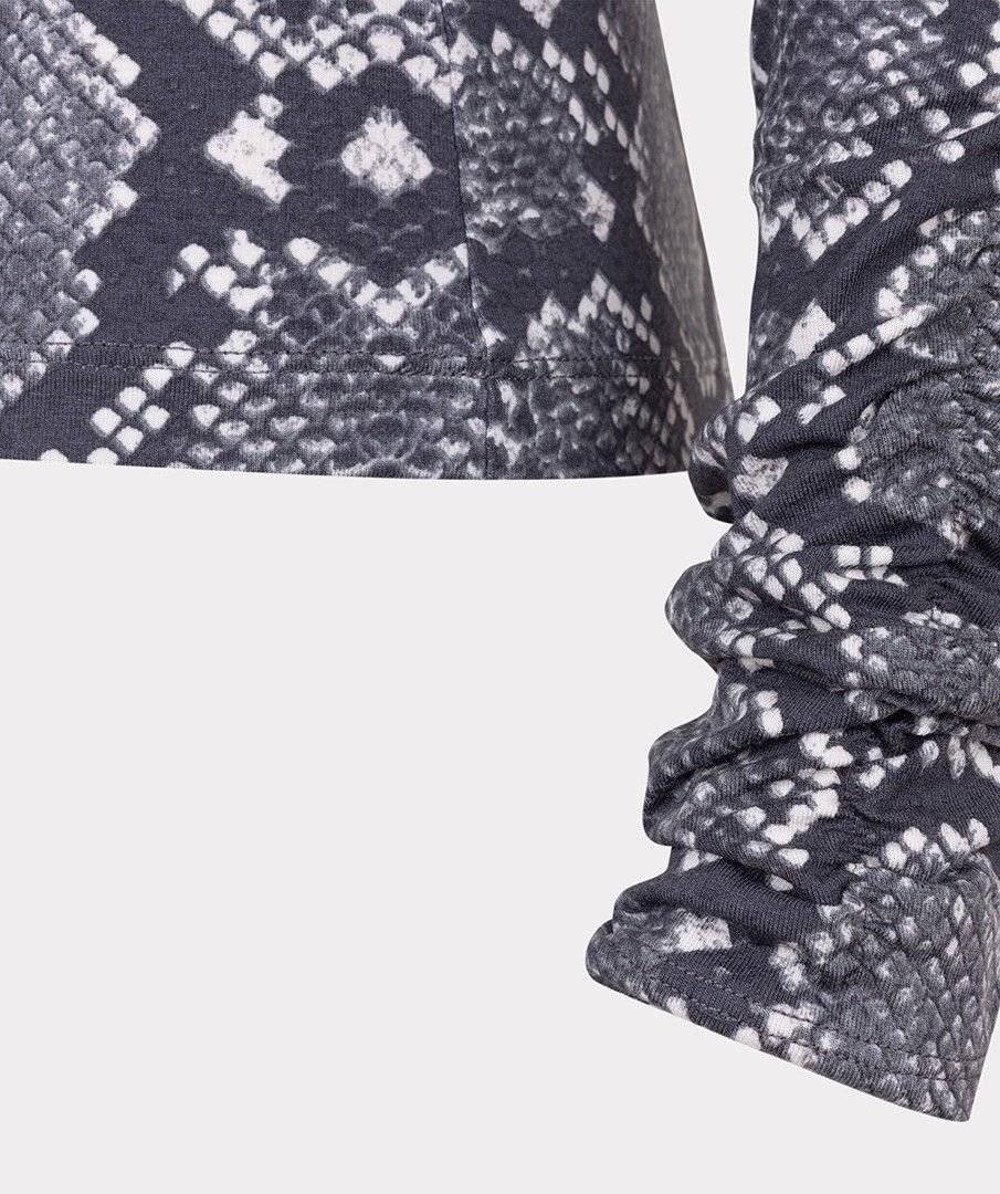 Deze Esqualo top in een stoere slangenprint geeft je look direct een opvallend en eigentijds karakter. Het nauwsluitende model met korte col accentueert het silhouet, terwijl de plooien aan het einde van de mouwen op elastiek zorgen voor een speels en stijlvol detail.