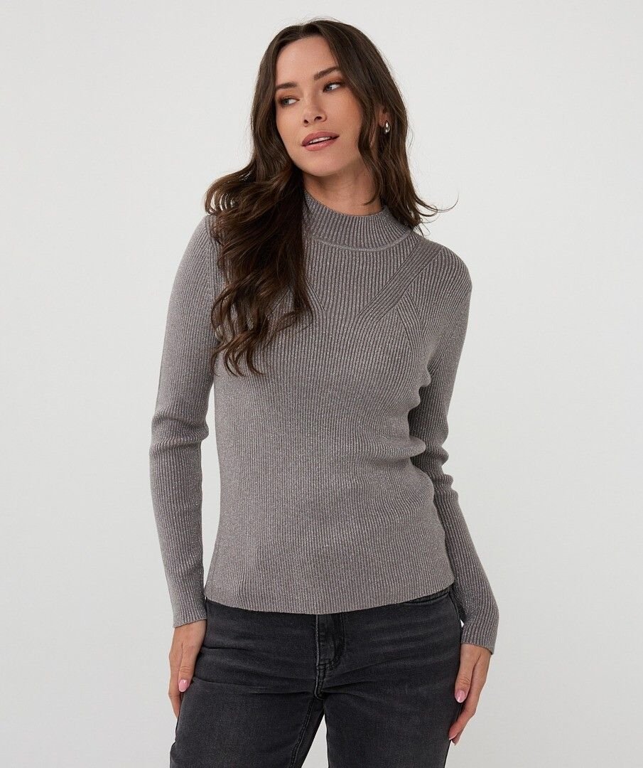 Esqualo Top Col Rib Lurex ā Grijs (Model F25.27506)
