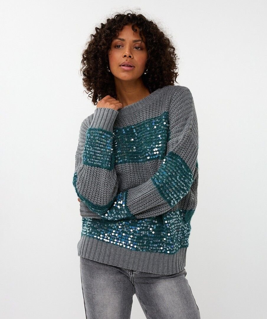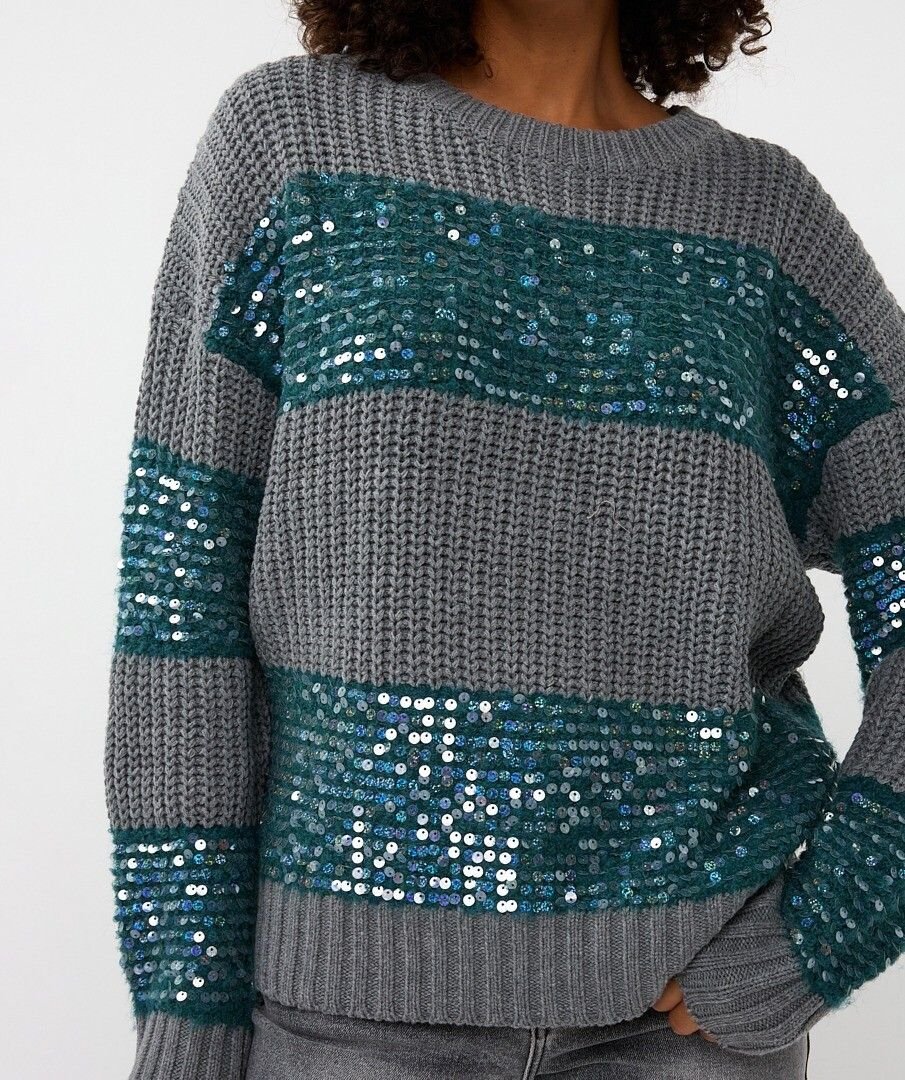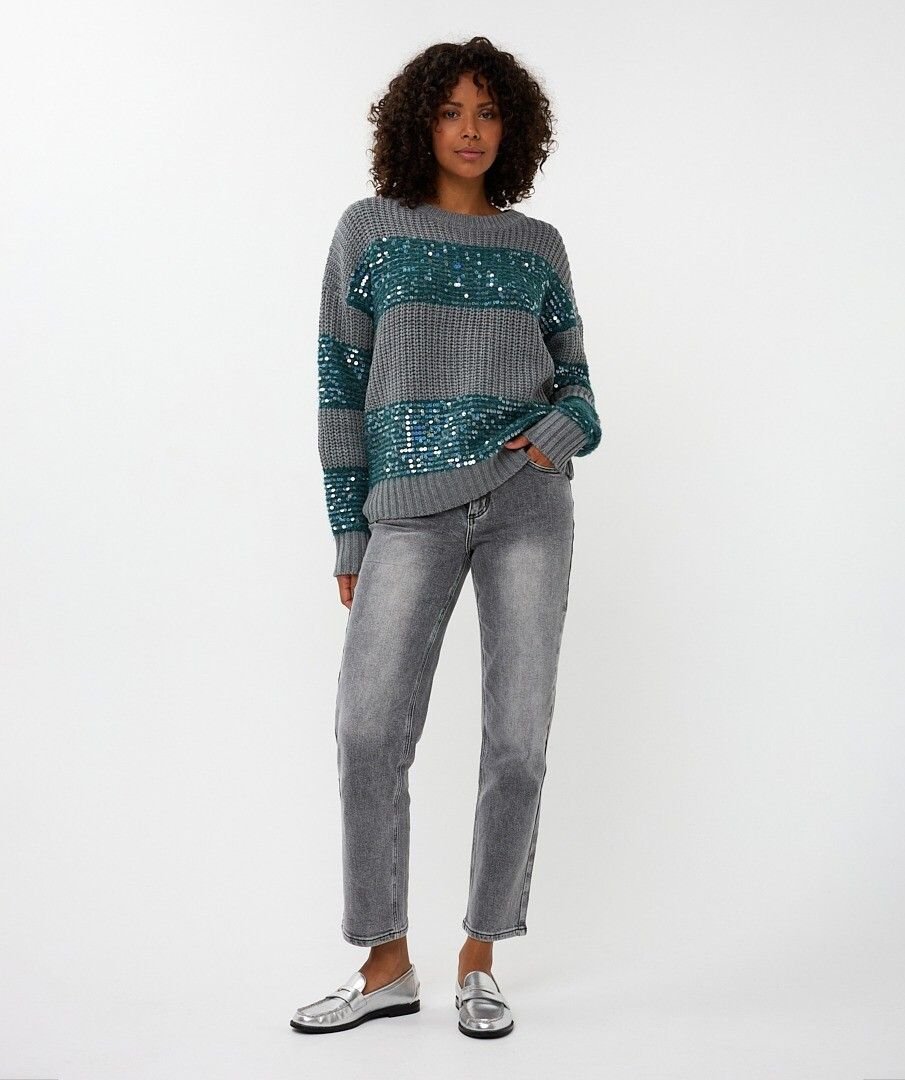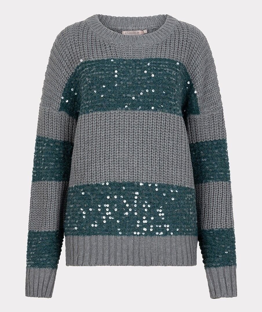 Esqualo Trui Oversized Paillietten Stripes W25.02718 Grijs