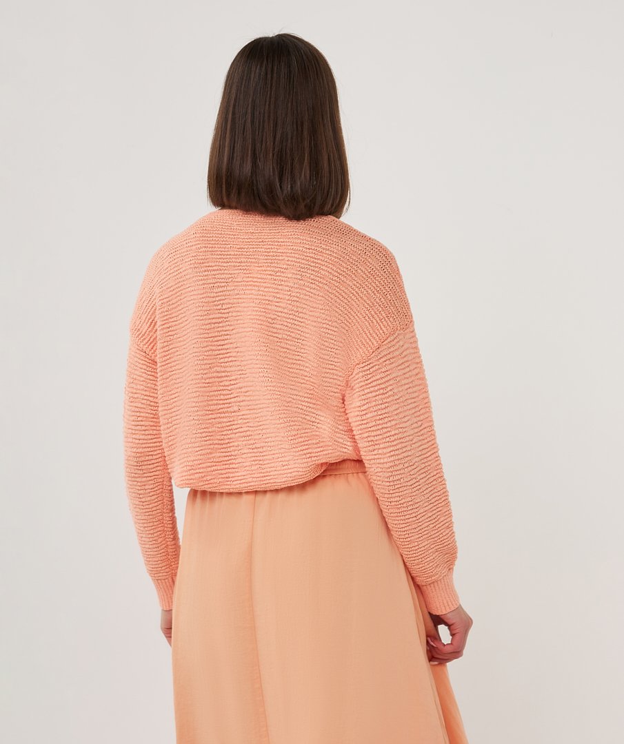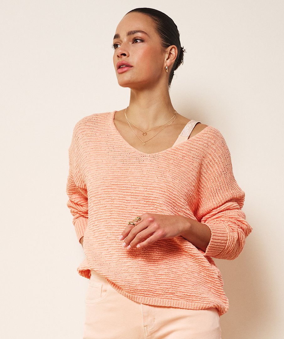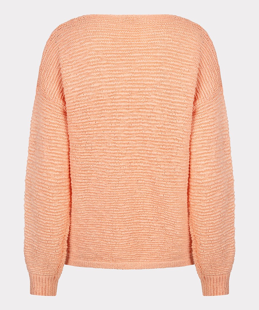 De Esqualo Trui V-Neck Tape Yarn in Bellini is een comfortabele en stijlvolle wijdvallende trui met een v-hals en lange mouwen. Het lichte en zachte materiaal van 60% polyester en 40% katoen zorgt voor een soepele pasvorm en prettig draagcomfort, ideaal voor dagelijks gebruik. De ontspannen snit maakt de trui veelzijdig en eenvoudig te combineren met zowel jeans als een rok voor een casual of nette look.