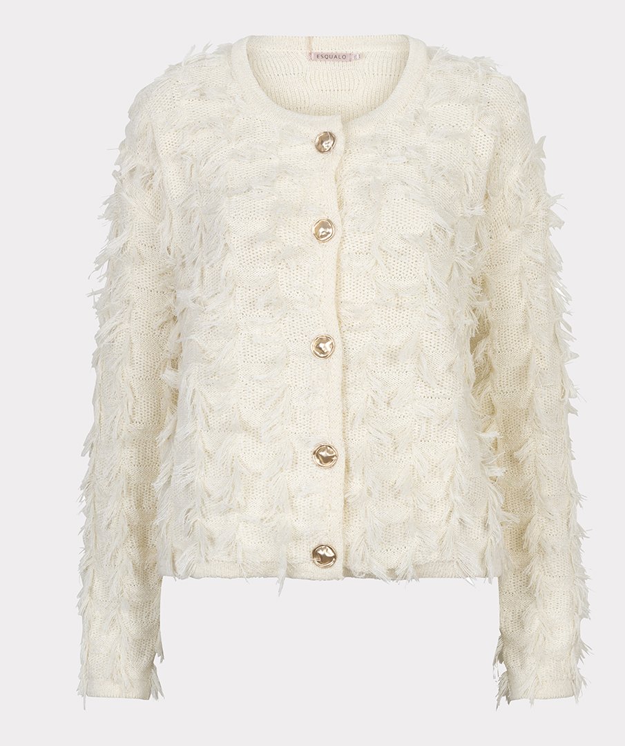 Het Esqualo Vest Fringes in Ecru is een stijlvol en speels gebreid vest dat een vleugje elegantie toevoegt aan elke outfit. Het vest is afgewerkt met chique gouden knopen en speelse franjes, waardoor het een opvallend en modieus detail krijgt.