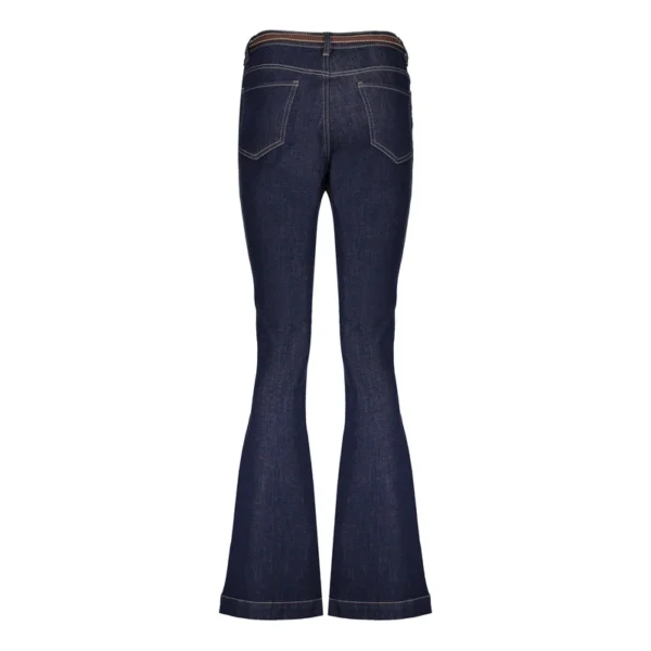 Deze trendy flared jeans van Geisha in dark blue denim brengt een vleugje retro uit de jaren ’80 naar je garderobe. Met een high waist fit en een klassieke knoop-ritssluiting, biedt deze jeans een stijlvolle en flatterende pasvorm. De 5-pocket stijl en de opvallende oprijgnaden geven de jeans een eigentijdse twist. Een extra leuk detail is het geregen touwtje door de broek lussen, wat de look een speelse touch geeft.