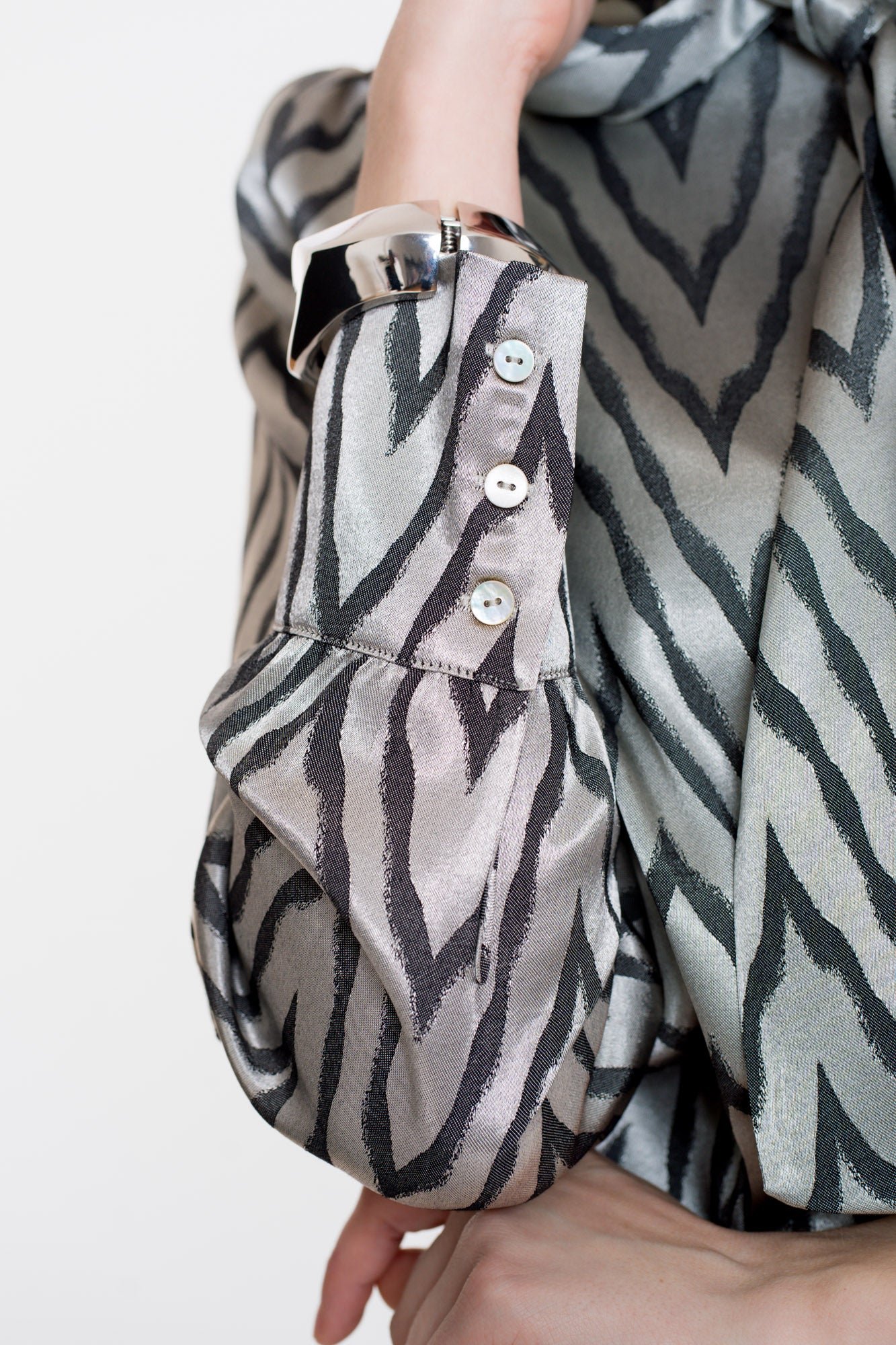 Geisha Blouse met Strik en Zigzagprint ā Zilvergrijs (Model 53593-32)