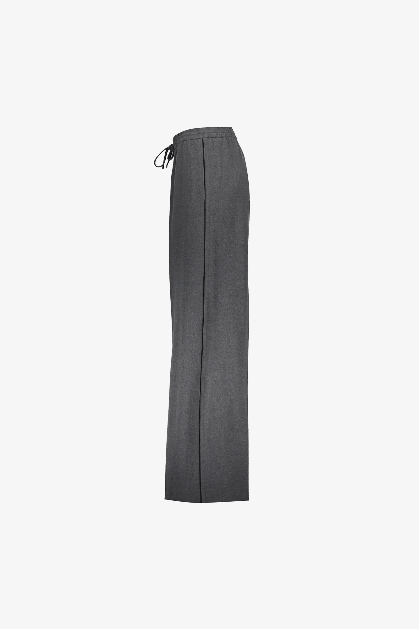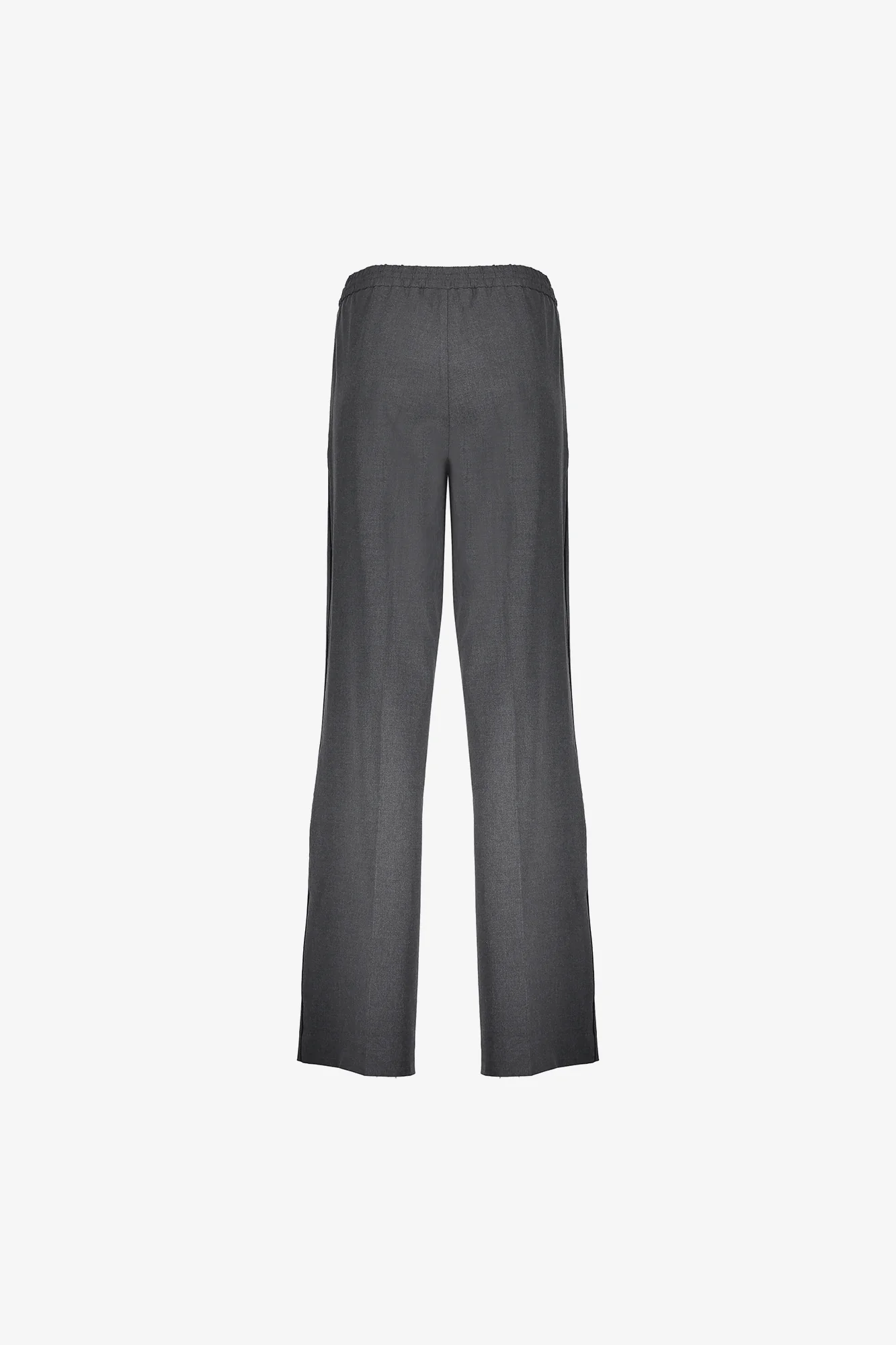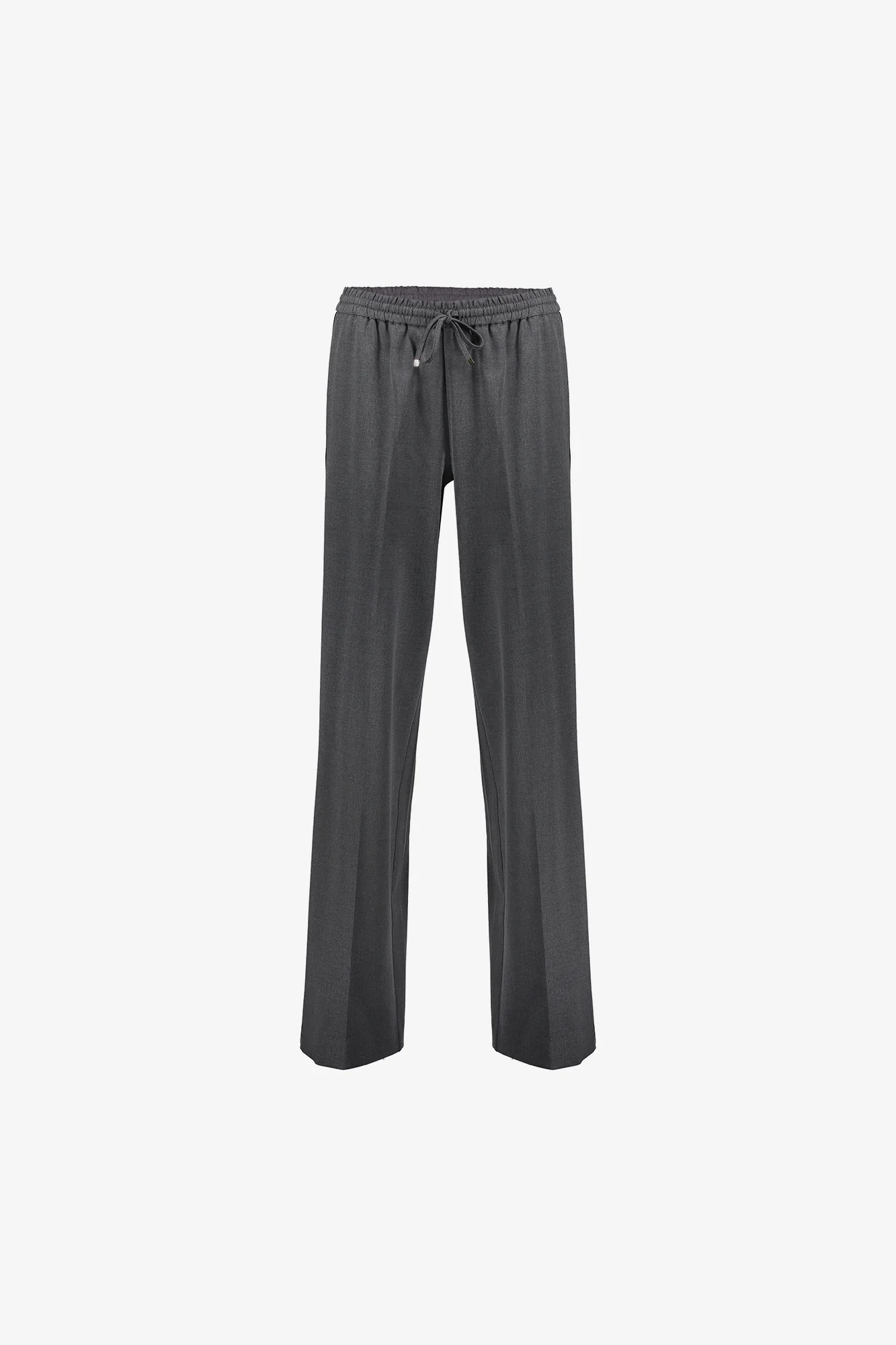 De Geisha flared classic broek in grijs/zwart is een comfortabele en stijlvolle basic met een moderne twist. Het model heeft een high-rise taille met een elastische tailleband en aantrekkoord, wat zorgt voor een perfecte en flexibele pasvorm.