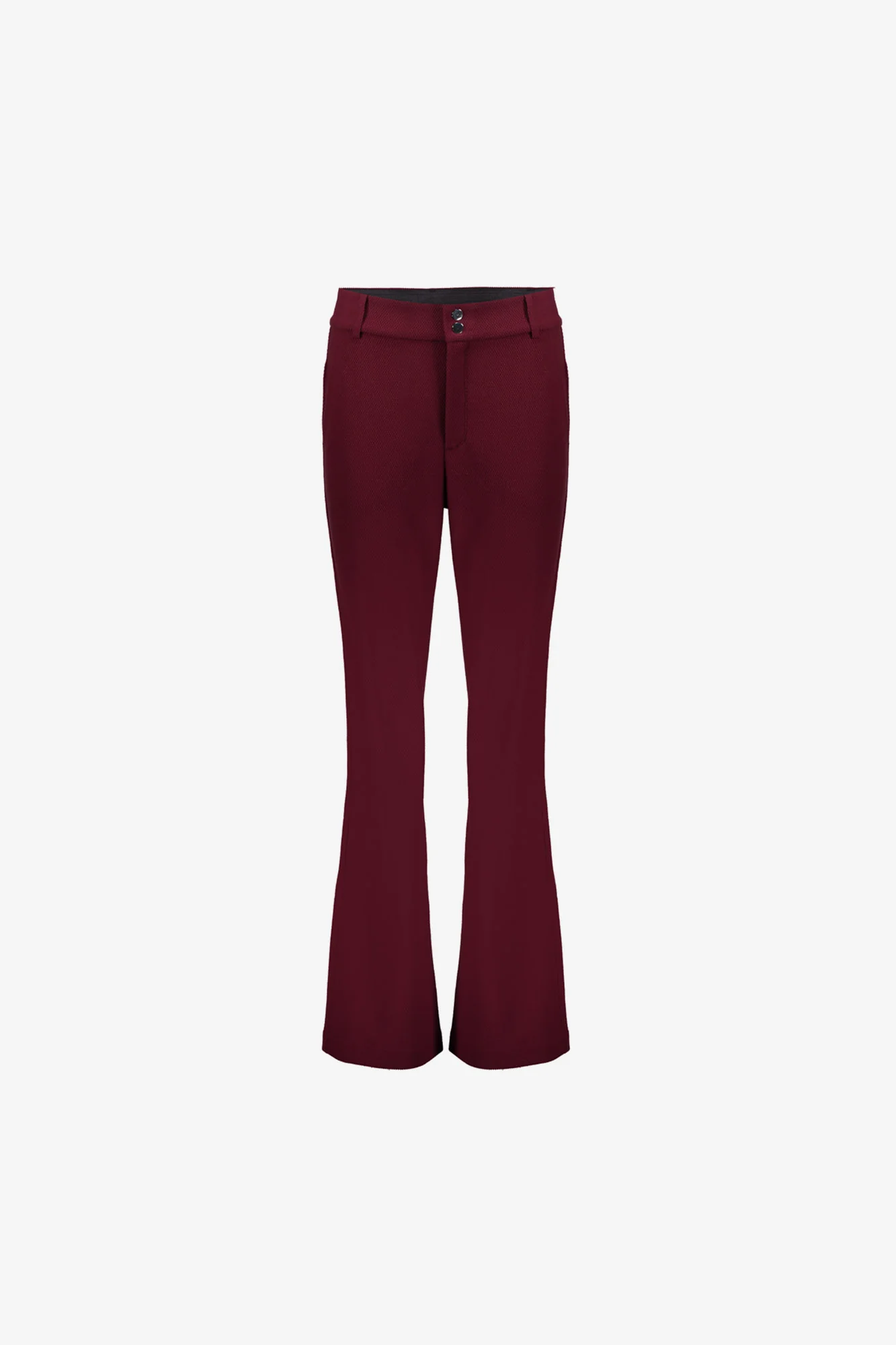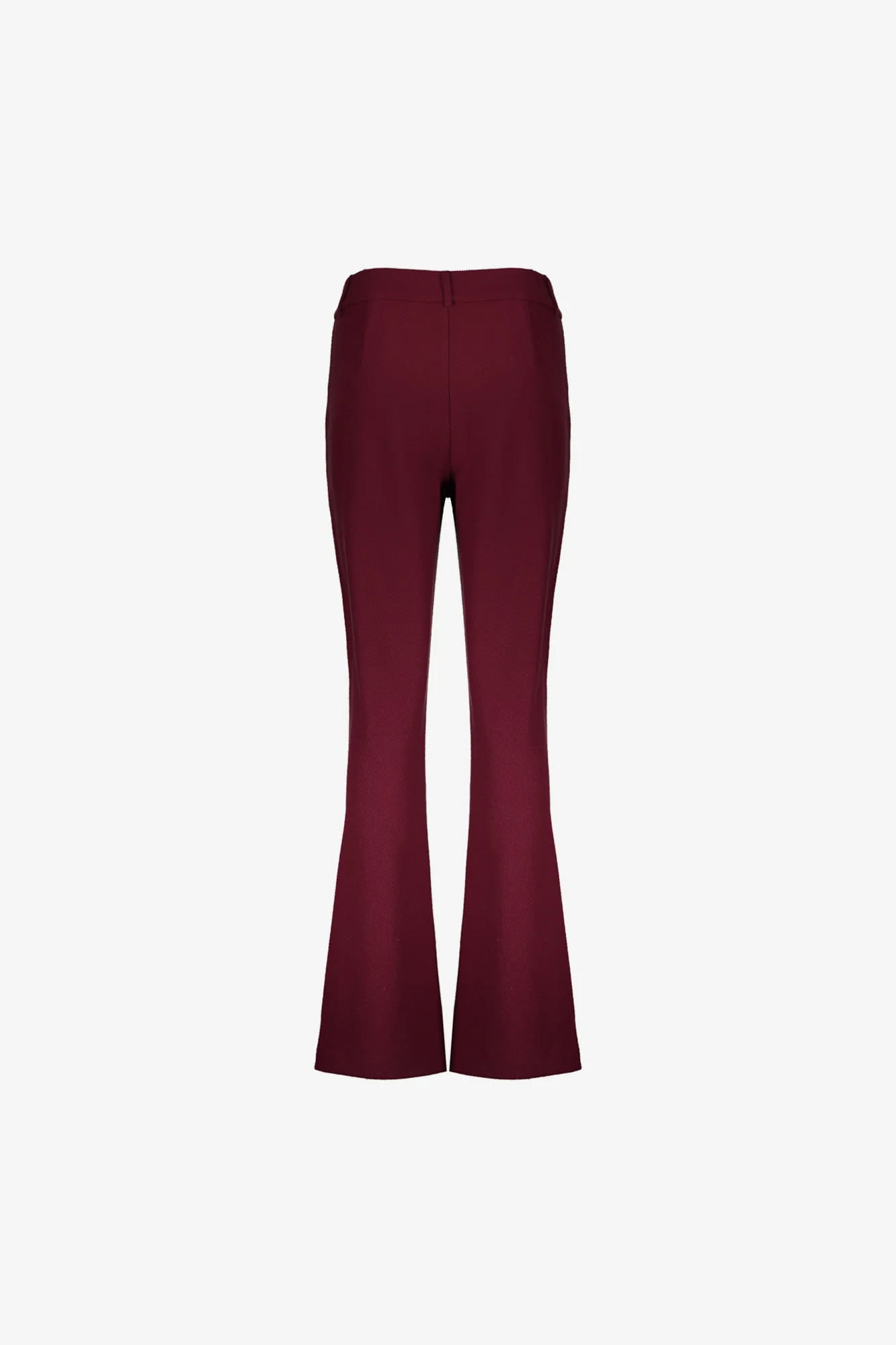 Deze Geisha broek in de kleur Port (bordeaux) combineert stijl en comfort in ƩƩn verfijnd ontwerp. Het high waist model met flared pijpen creƫert een vrouwelijk en elegant silhouet, terwijl de subtiele honeycomb structuur zorgt voor een luxe en moderne uitstraling.