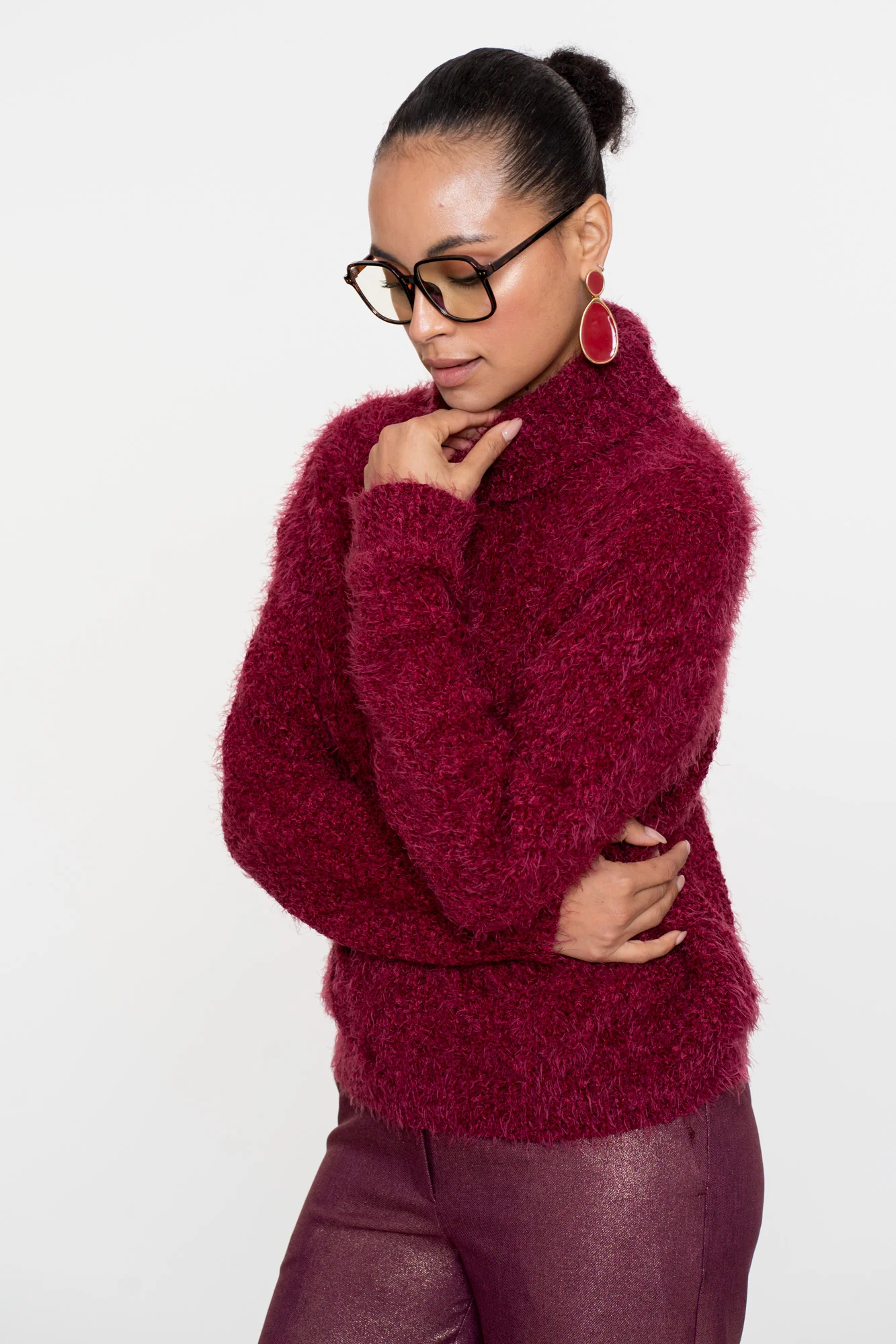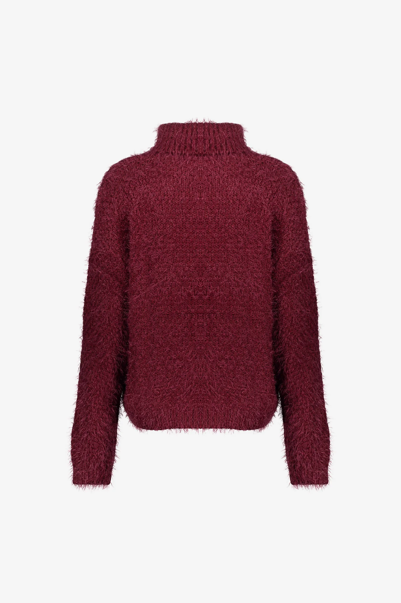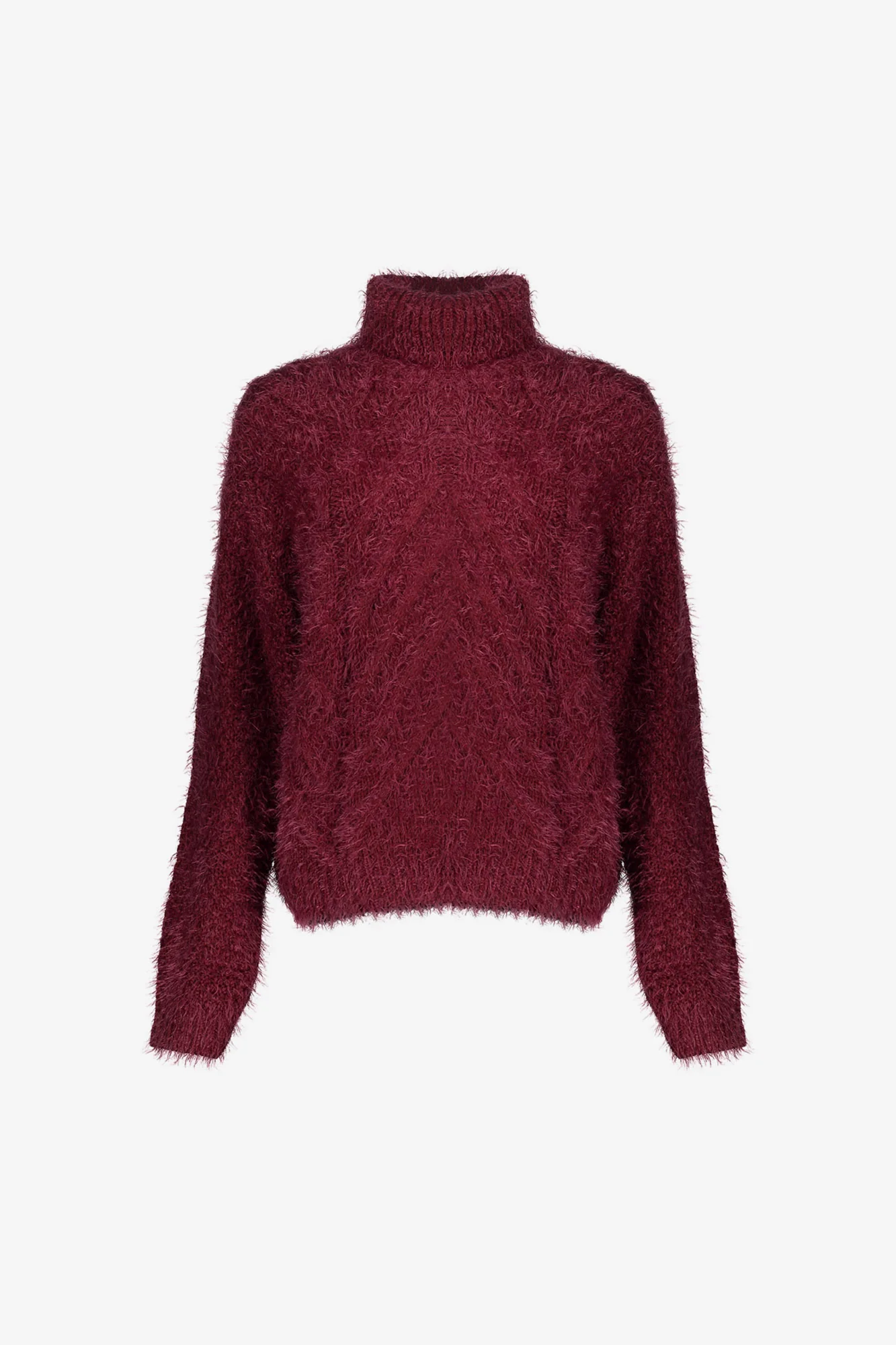 Deze Geisha kabeltrui in diepe burgundy kleur is een echte winterklassieker met een moderne twist. De opstaande turtleneck zorgt voor extra warmte en een stijlvolle uitstraling, terwijl de rechtvallende pasvorm comfortabel en flatterend is.