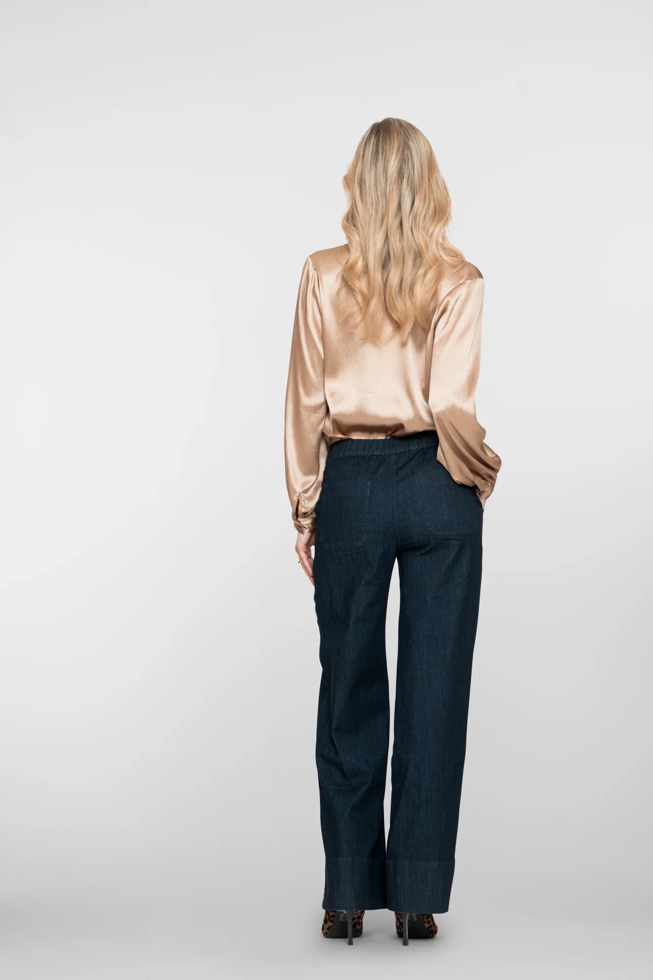 De Geisha raw denim jeans in donkerblauw combineert een klassieke denimlook met modern draagcomfort. Dankzij de high-rise taille en de elastische tailleband aan de achterzijde biedt deze jeans een perfecte pasvorm die de hele dag comfortabel zit.