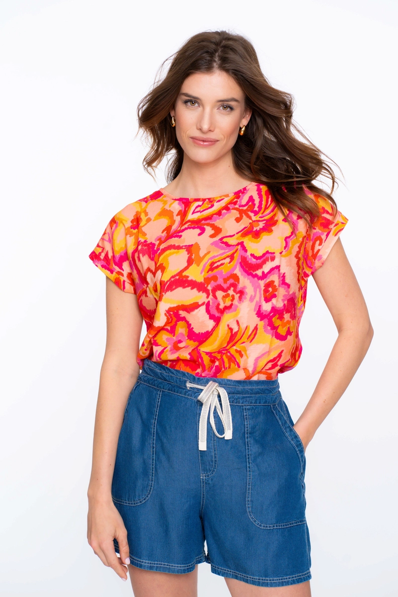 Deze stijlvolle Geisha top (model 53215-20) in de prachtige kleur Pink/Coral is een perfecte mix van elegantie en comfort. De geprint geverfde look geeft de top een speels effect, terwijl de ajour details op de achterzijde zorgen voor een verfijnde en vrouwelijke touch.