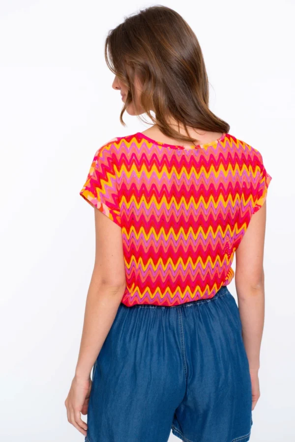 Geisha Top met Korte Mouwen en Ajour Details 53215-20 in de kleur 420 Pink/Coral