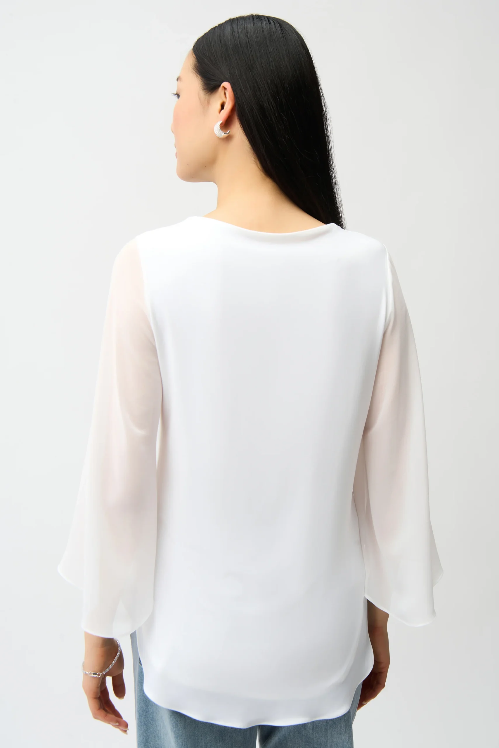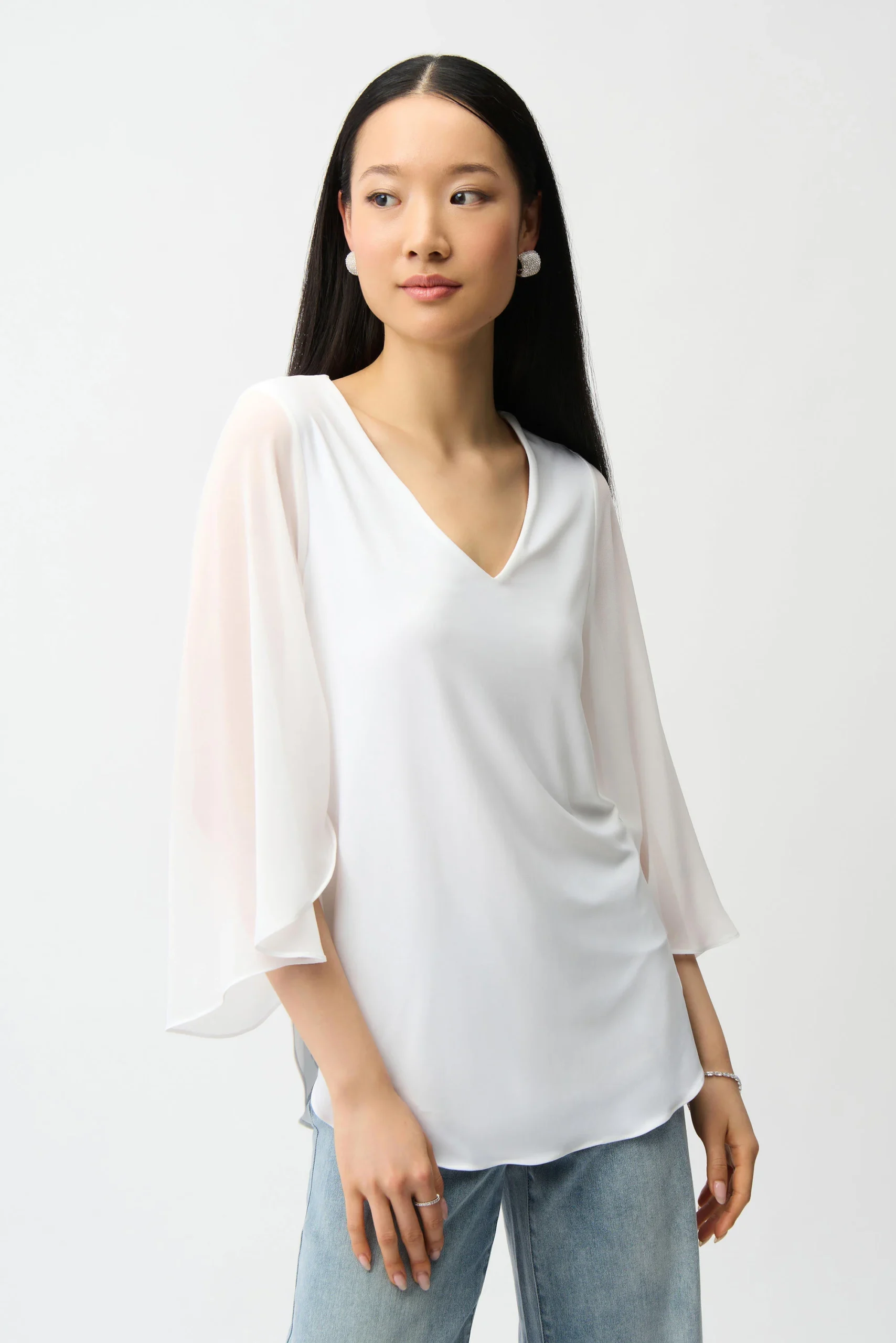 Joseph Ribkoff Silky Knit Rechte Tuniek met Chiffon Tulp Mouwen ā Model 261183 (Vanilla 1761)