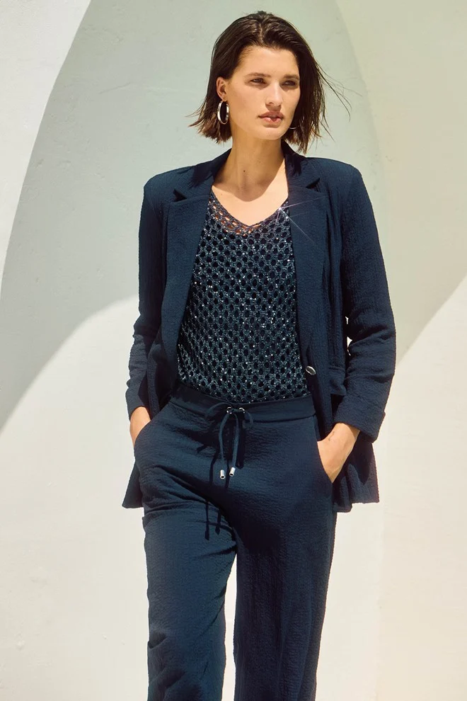 Joseph Ribkoff Open Stitch Trui met Pailletten 241922S25 – Donkerblauw (2166)
