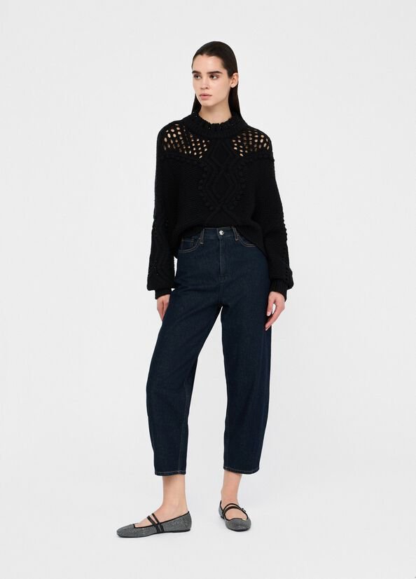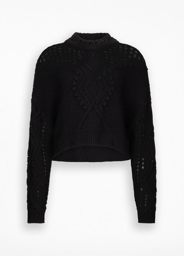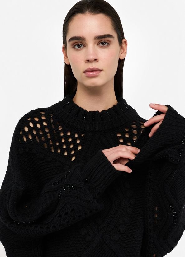 Liu Jo ā Wollen Trui met Opengewerkte Details in Zwart (model MF5442-MA930)