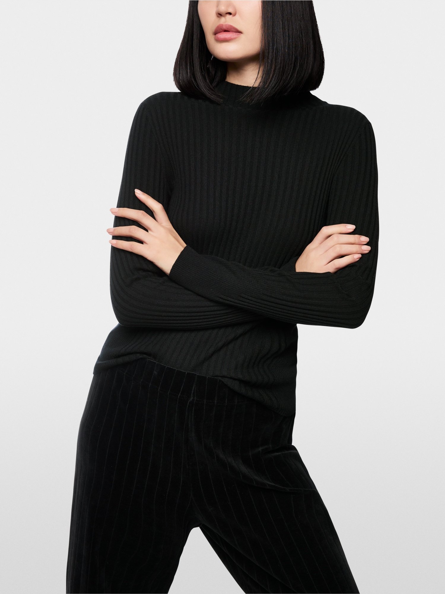 Marc Cain Fijn Geribde Trui – Model ZS4135M80 | Kleur Zwart (900)