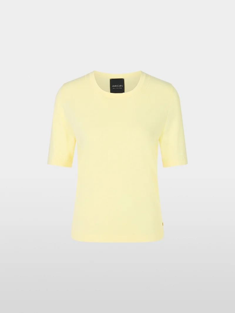 Deze minimalistische trui van MarcCain is een verfijnde toevoeging aan je garderobe. Gemaakt van hoogwaardig fijn breisel op basis van viscose, biedt deze trui een comfortabele en elegante pasvorm. Het model heeft een smalle fit, korte mouwen en een ronde hals, afgewerkt met een subtiel 3D-effect bij de halslijn. De lichte semi-transparante stof geeft de trui een luchtige en luxe uitstraling ā perfect voor zowel casual als geklede looks.